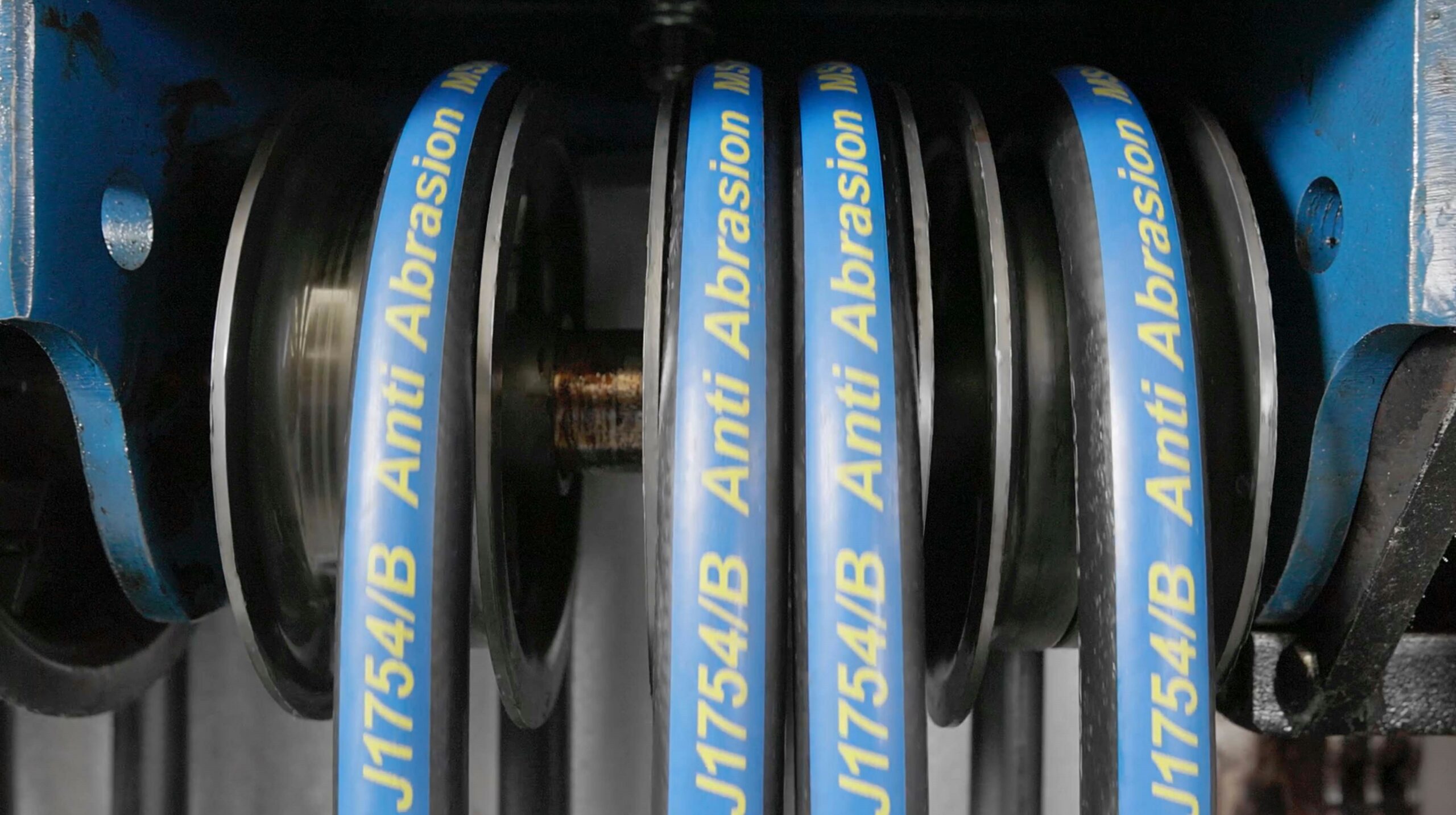 No snagging or pinchingThanks to its smooth cover, it moves over rollers with ease and withstands contact with other machine components. The hose diameter is designed to fit into the OEM clamps eliminating bulging and pinch points.